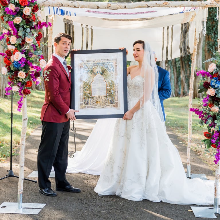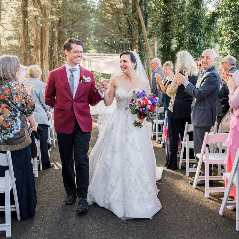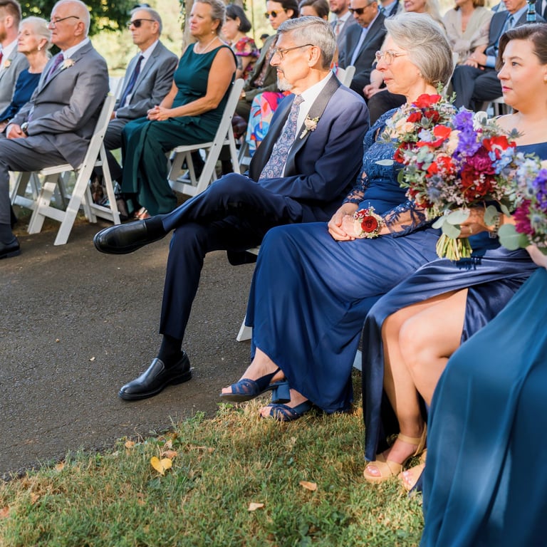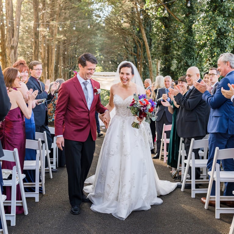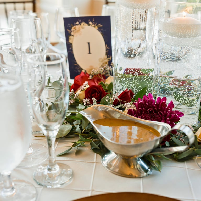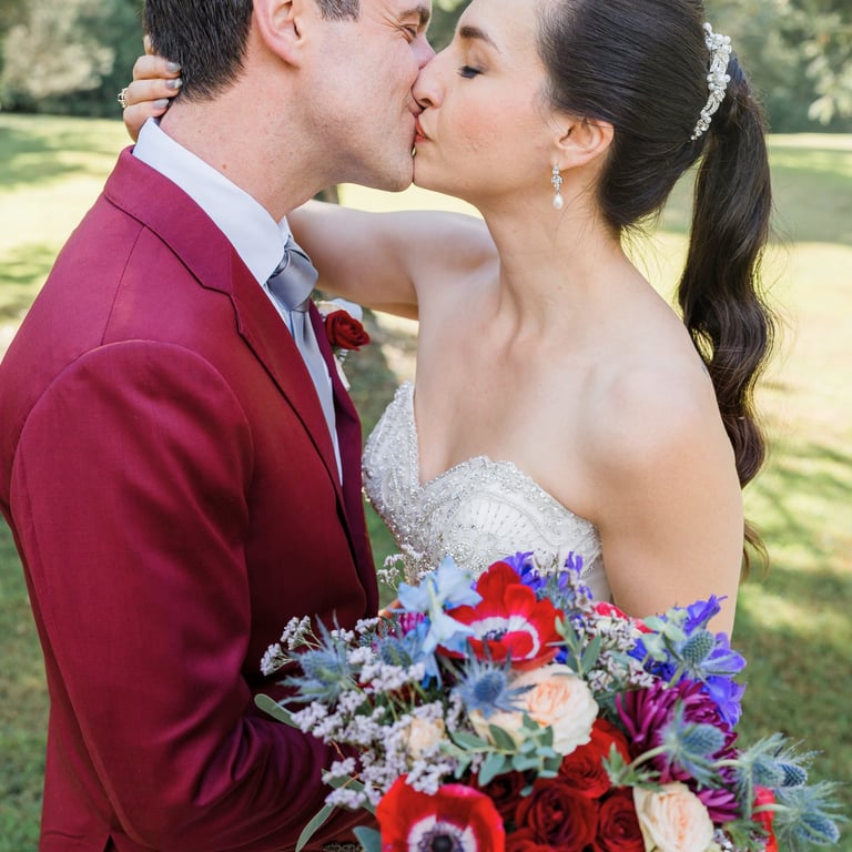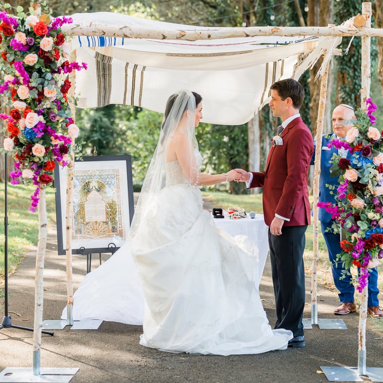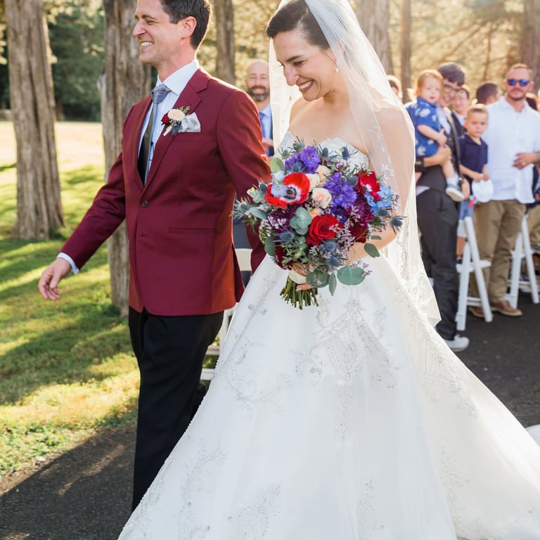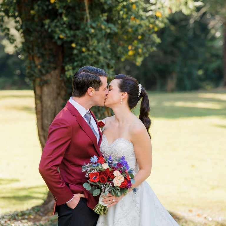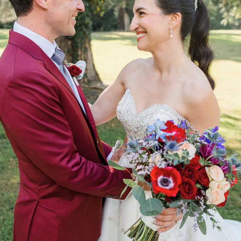 They imagined a dreamy outdoor ceremony surrounded by nature. We crafted lush floral arrangements of roses and hydrangeas, accented with cascading greenery and warm lights, bringing their love story to life in the most romantic way.